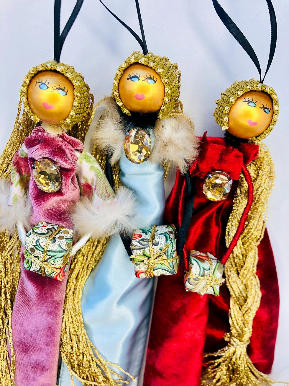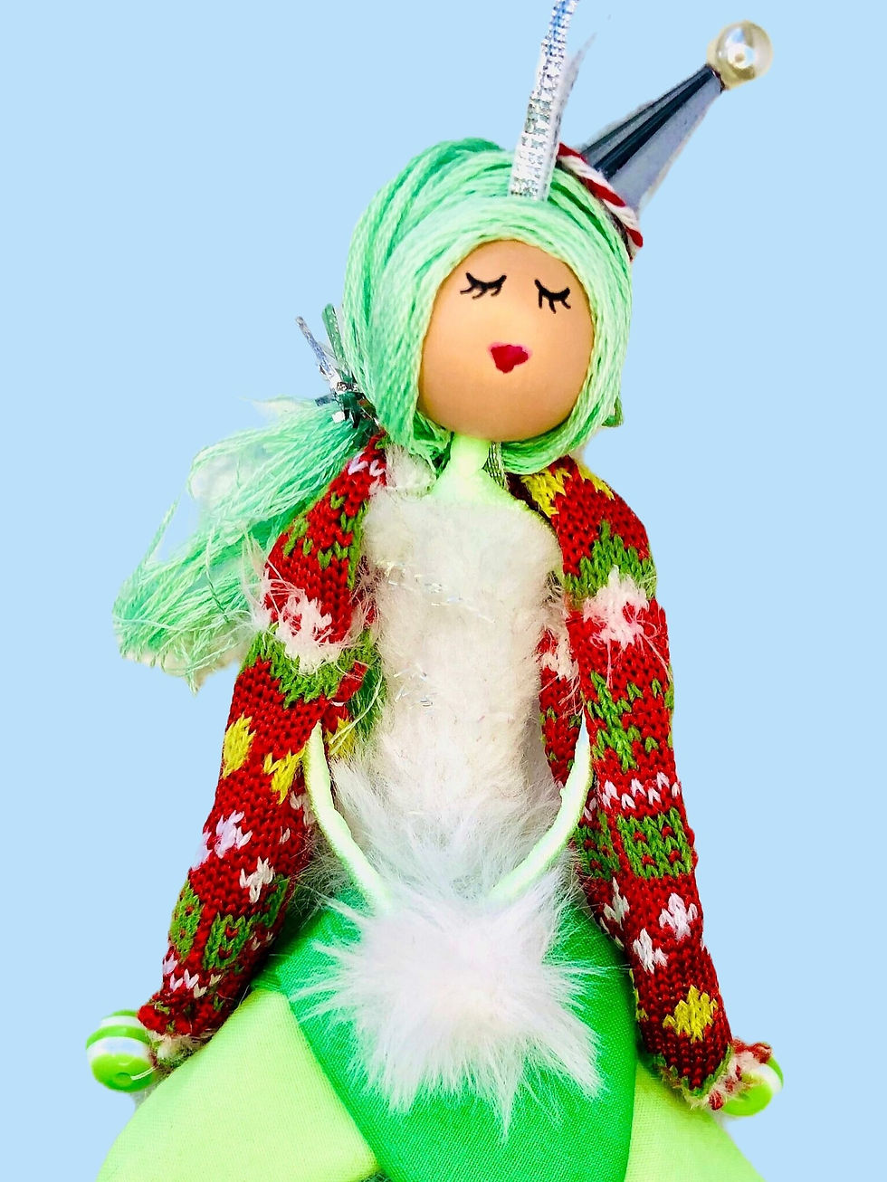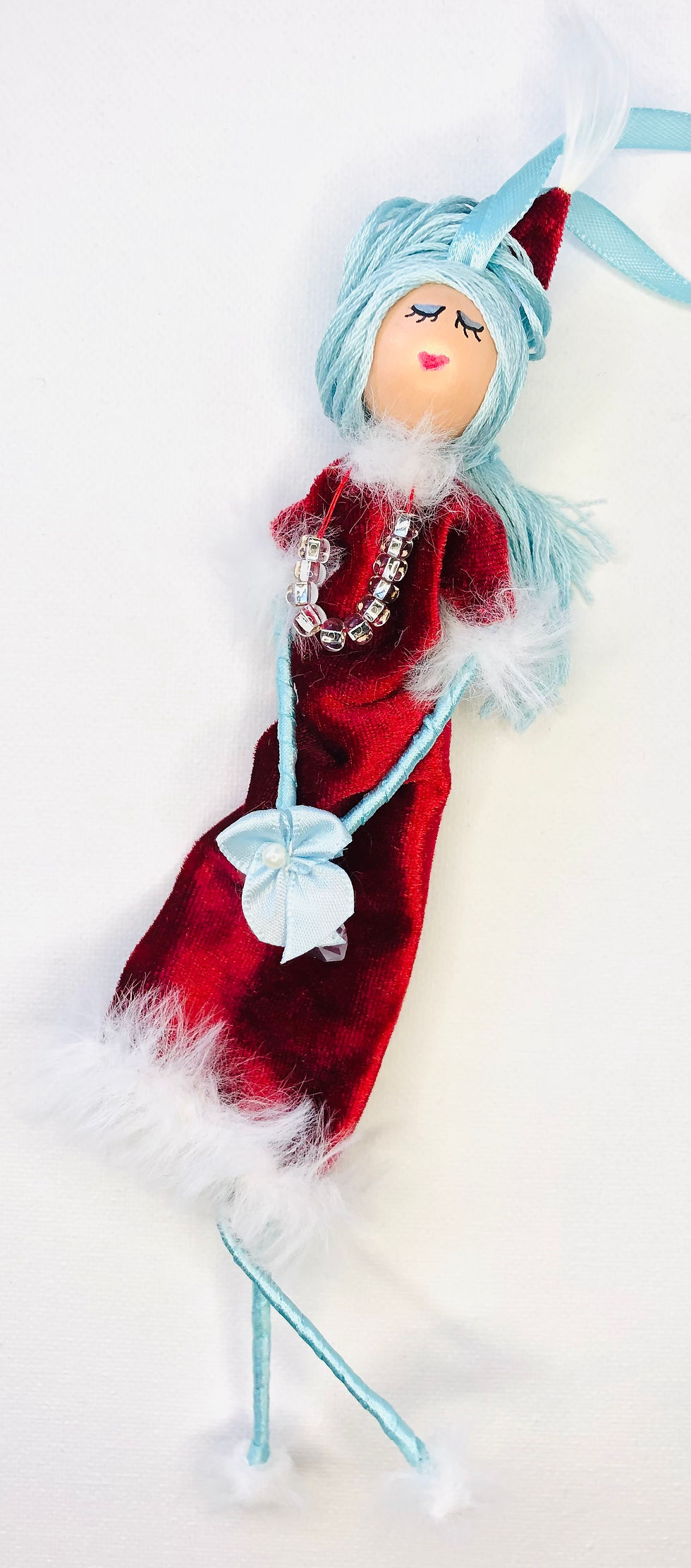 Awaken to the wonder of Christmas with this curiosity cabinet of festive couture Care Dolls. Ideal as ornaments, tree-toppers, or unique adornments for a winter mantlepiece, this curious collection of chic and stylish Christmas Care Doll ornaments (the three wise women, reindeers, elves, owls, cats, bears, ballerinas, and, of course, Mrs. Claus) will bring joy to all who love the yuletide season—and even the grinches!